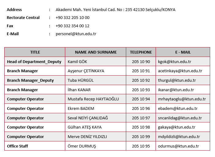 Units Affiliated to the Rectorate