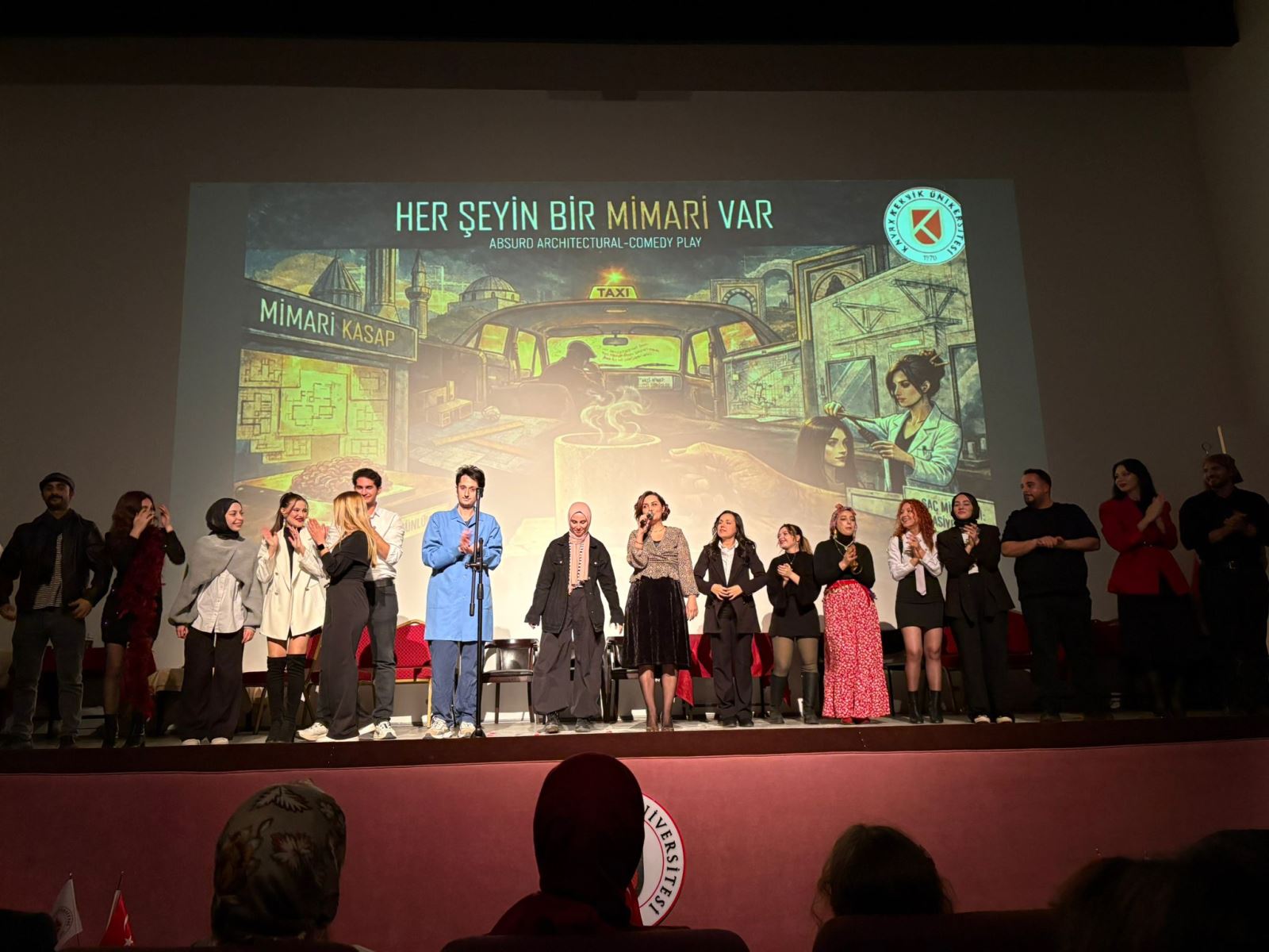Tiyatro Sahnesinde Mimarlık dersi kapsamında Prof. Dr. Bilgehan Yılmaz hocamızın yürütücülüğünde her yıl gerçekleştirilen tiyatro gösterisi, bu yıl "Her Şeyin Bir Mimarı Var" adıyla gerçekleştirilmiştir. Mimarlık mesleğine ilişkin eleştirel ve düşündürücü mesajları mizahi bir anlatımla harmanlayan bu  gösterinin gerçekleştirilmesinde emeği geçen hocamıza, etkinliğe katkı sunan öğrencilerimize ve katılımlarıyla programı zenginleştiren değerli izleyicilerimize teşekkür ederiz.