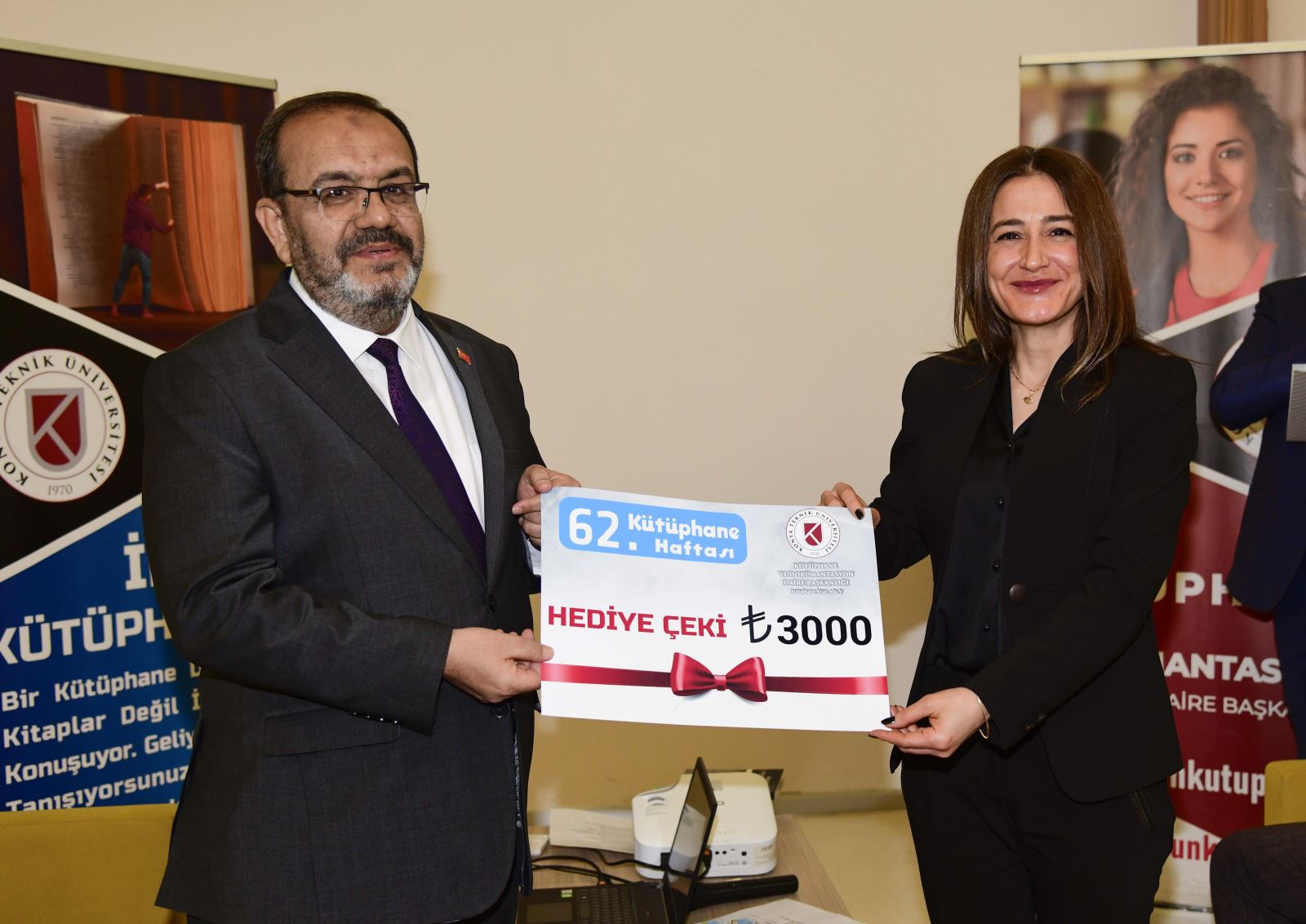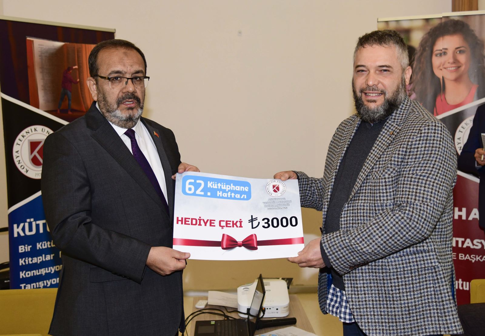 Programın devamında geleneksel ödül törenine geçildi. 2025 yılında en fazla kitap okuyan ve veri tabanlarını en etkin kullanan kütüphane kullanıcılarına ödülleri, Rektör Prof. Dr. Osman Nuri Çelik ile Rektör Yardımcısı Prof. Dr. Ali Köken tarafından takdim edildi.