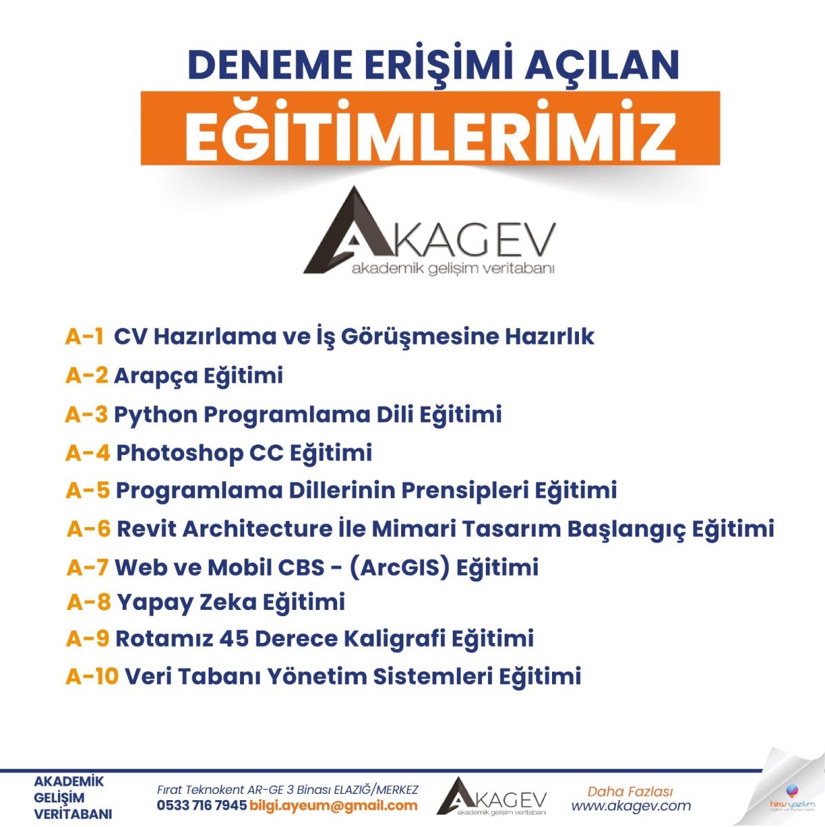 AKAGEV Veri Tabanı 09 Kasım 2025 tarihine kadar deneme erişimine açılmıştır. Platformda yer alan 10 adet eğitime erişim sağlayabilirsiniz.