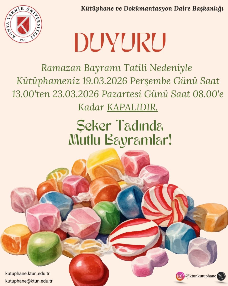 Kütüphane Bayram Tatili Çalışma Saatleri Hk.
