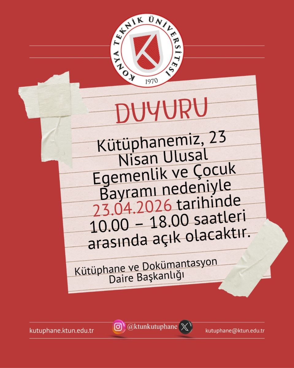Kütüphane Resmi Tatil Çalışma Saatleri Hk.