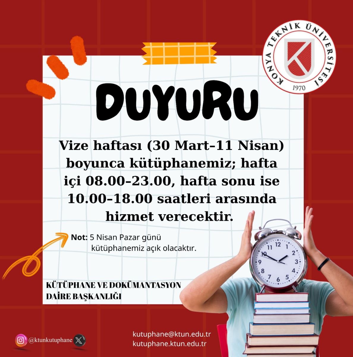 Kütüphane Vize Haftası Çalışma Saatleri Hk.