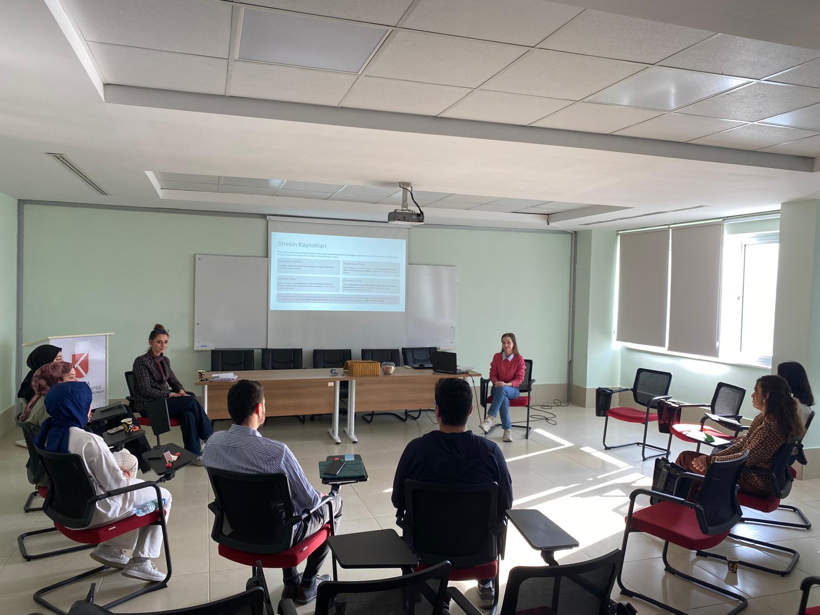 Konya Teknik Üniversitesi Psikolojik Danışma ve Rehberlik Uygulama ve Araştırma Merkezi (PDRM) tarafından, sınav haftası öncesinde öğrencilerin psikolojik dayanıklılıklarını güçlendirmeyi ve stresle baş etme becerilerini artırmayı amaçlayan “Stresle Baş Etme Atölyesi” düzenlendi.