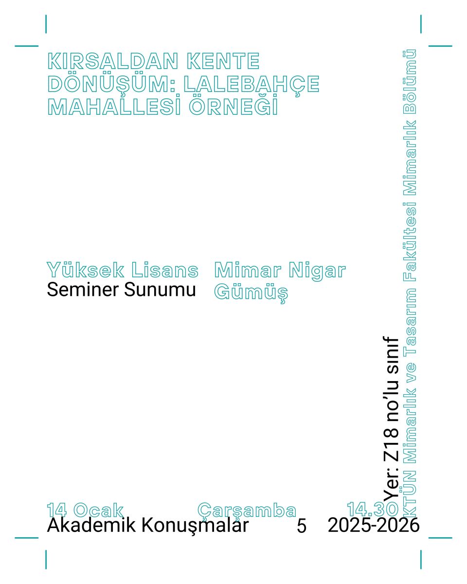 Prof. Dr. Mine ULUSOY hocamızın lisansüstü öğrencisi Nigar Gümüş'ün yüksek lisans seminer sunumu 14 Ocak çarşamba günü saat 14.30’da Z18 nolu sınıfta gerçekleştirilecektir. Katılımınızı bekleriz.