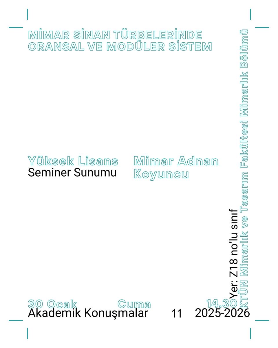 Dr. Öğr. Üyesi H. Abdullah ERDOĞAN hocamızın lisansüstü öğrencisi Adnan Koyuncu'nun yüksek lisans seminer sunum 30 Ocak cuma günü saat 14.30’da Z18 nolu sınıfta gerçekleştirilecektir. Katılımınızı bekleriz.