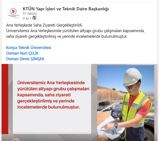 Üniversitemiz öğretim üyesi Prof.Dr. Murat OLGUN'un katılımıyla Üniversitemiz Ana Yerleşke Alanında planlanan ring hattı güzergah alt yapısına ilişkin incelemeler yapıldı