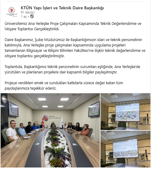 KTÜN Merkez Yerleşke Alanın Proje Yönetim Süreç Değerlendirme Toplantısı Gerçekleştirildi.