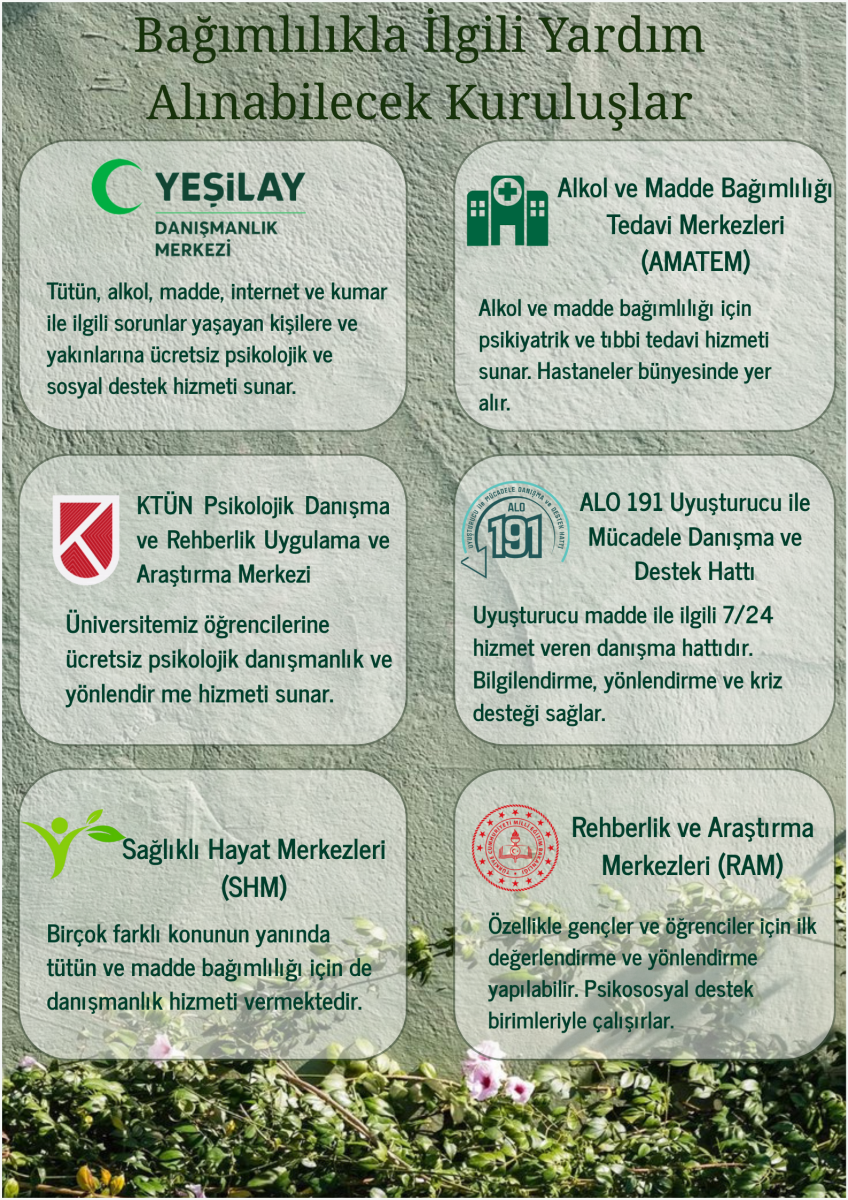 TÜTÜN BAĞIMLILIĞIBir Sigara Yaşamınızı Nasıl Etkiliyor? için tıklayınız.Sigaranın Ne Zararı Var? için tıklayınız.Elektronik Sigara için tıklayınız.Tütün ve Tütün Bağımlılığı için tıklayınız.Nefesine Sahip Çıkmak Senin Elinde için tıklayınız.Sigarayı Bırakma Rehberi için tıklayınız.Sigarayı Bıraktım Ya Sonra? için tıklayınız.