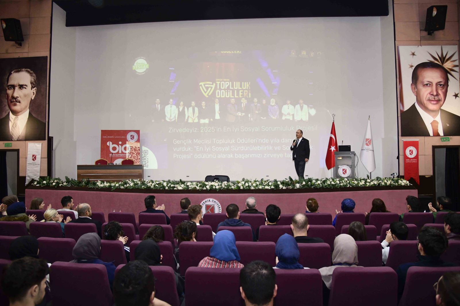 Program kapsamında, Yeşilay Konya Şube Başkanı Prof. Dr. Yağmur Küçükbezirci ile Yeşilay Danışmanlık Merkezi Sosyal Hizmet Uzmanı Betül Palta, bağımlılığın bireysel, sosyal ve psikolojik boyutları, bağımlılıkla nasıl mücadele edilire ilişkin kapsamlı bilgiler paylaştı. Sunumlarda; madde, teknoloji ve davranışsal bağımlılık türleri, risk faktörleri, korunma yöntemleri ve profesyonel destek mekanizmaları ele alındı. Özellikle gençlik döneminde farkındalık kazanmanın ve erken müdahalenin önemi vurgulandı.