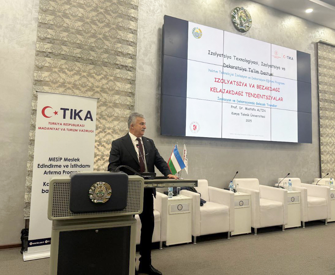 Üniversitemiz, Türk İşbirliği ve Koordinasyon Ajansı (TİKA) ile Özbekistan Ekonomi ve Maliye Bakanlığı iş birliğinde yürütülen Meslek Edindirme ve İstihdamı Destekleme Programı (MESİP) kapsamında Özbekistan’da düzenlenen ‘İzolasyon ve Dekorasyon Teknolojisi Eğitimi’ne akademik katkı sundu.