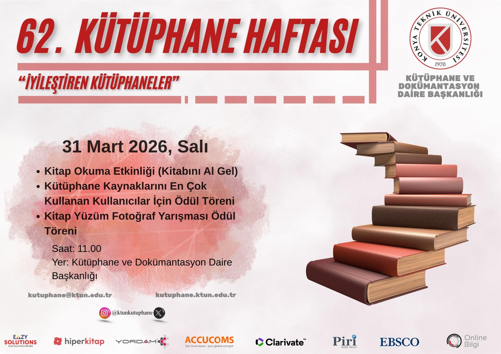62. Kütüphane Haftası kapsamında düzenlediğimiz kutlama etkinliklerine hepiniz davetlisiniz.