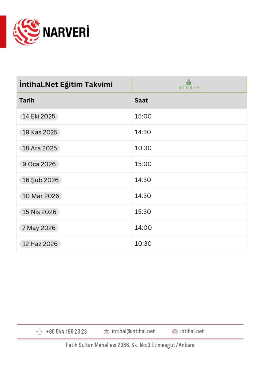 Değerli Kullanıcılarımız; İntihal.Net kapsamında yıllık eğitim takvimi aşağıdaki gibidir: Ekual intihal.net Eğitim ücretsiz KTUN kütüphane