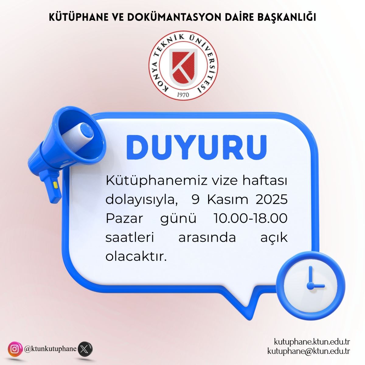 Kütüphane Vize Haftası Çalışma Saatleri Hk.