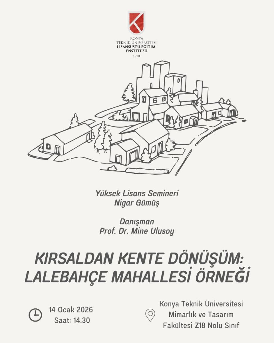 Prof. Dr. Mine ULUSOY hocamızın lisansüstü öğrencisi Nigar Gümüş'ün yüksek lisans seminer sunumu 14 Ocak çarşamba günü saat 14.30’da Z18 nolu sınıfta gerçekleştirilecektir. Katılımınızı bekleriz.