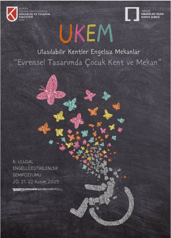 “Evrensel Tasarımda Çocuk, Kent ve Mekân” temalı UKEM 2025 – 6. Ulusal Engellileştirilenler Sempozyumu, Konya Teknik Üniversitesi Mimarlık ve Tasarım Fakültesi yürütücülüğünde ve TMMOB Mimarlar Odası Konya Şubesi iş birliğinde 20–21–22 Kasım 2025 tarihlerinde gerçekleşecektir. |