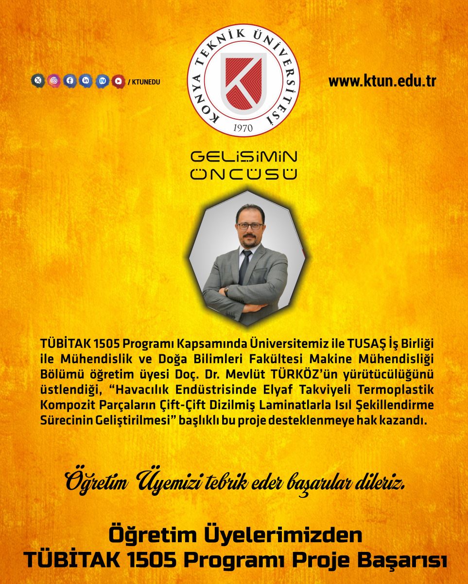 TÜBİTAK 1505 Programı Kapsamında Üniversitemiz ile TUSAŞ İş Birliği ile Mühendislik ve Doğa Bilimleri Fakültesi Makine Mühendisliği Bölümü öğretim üyesi Doç. Dr. Mevlüt TÜRKÖZ’ün yürütücülüğünü üstlendiği, “Havacılık Endüstrisinde Elyaf Takviyeli Termoplastik Kompozit Parçaların Çift-Çift Dizilmiş Laminatlarla Isıl Şekillendirme Sürecinin Geliştirilmesi” başlıklı bu proje desteklenmeye hak kazandı.