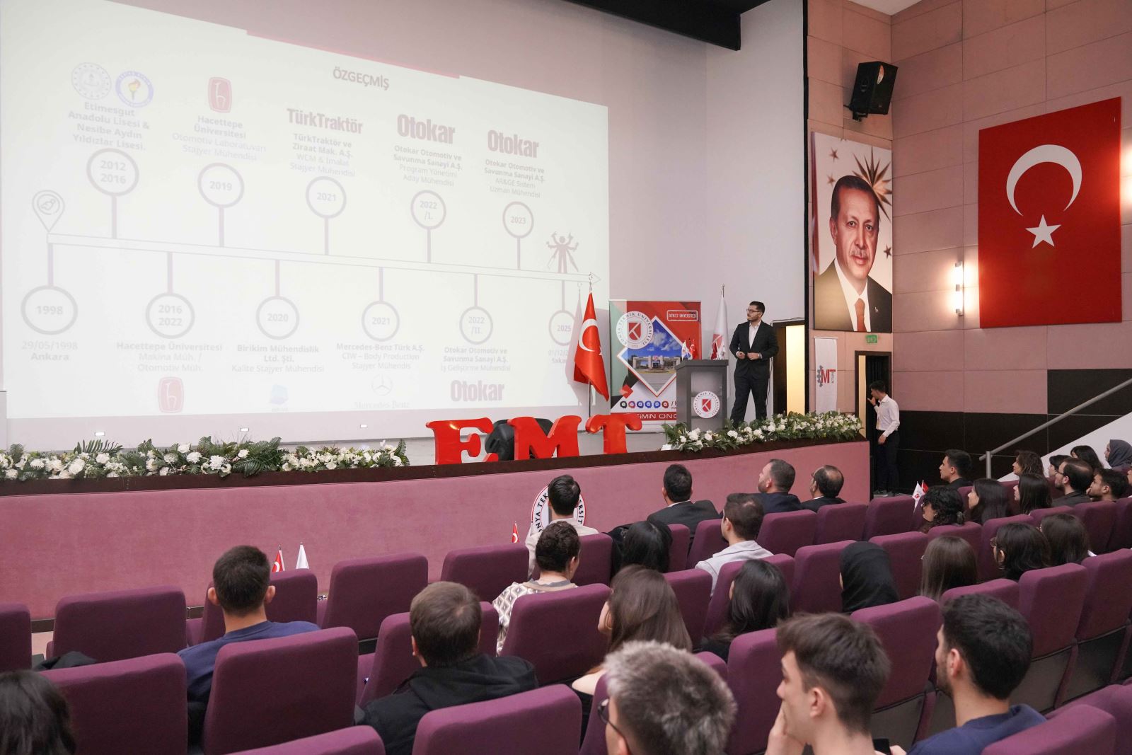 EMT Başkanı Salihcan Eşer de yaptığı konuşmada topluluğun yıl boyunca yürüttüğü çalışmalardan bahsederek, “Bu etkinliği uzun bir hazırlık süreci, yoğun emek ve güçlü bir ekip çalışmasıyla gerçekleştirdik. Amacımız, arkadaşlarımızın hem mesleki vizyonunu geliştirmek hem de sektörle doğrudan temas kurmalarını sağlamaktır.” dedi.
