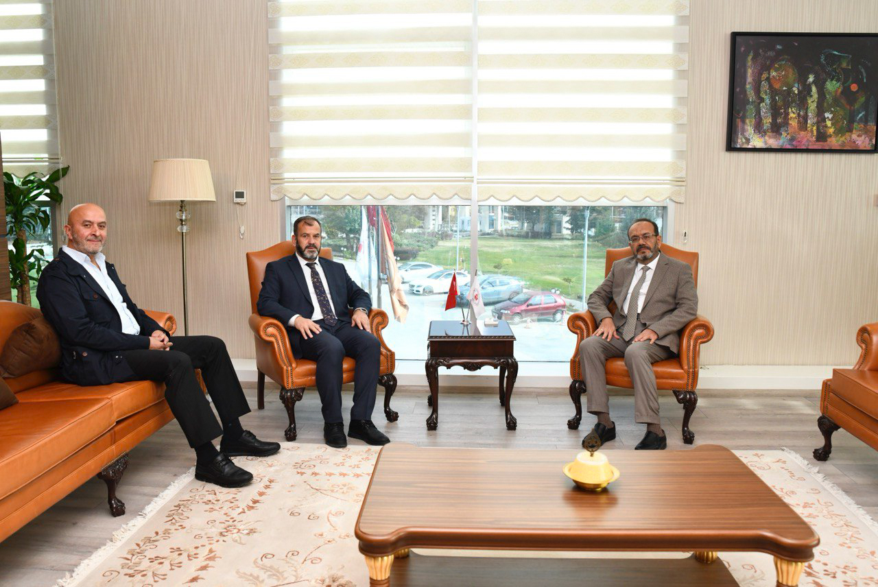 Konya İl Müftüsü Prof. Dr. Ali Öge ve beraberinde Mehir Vakfı Mütevelli Heyeti Başkanı Mustafa Özdemir, Rektörümüz Prof. Dr. Osman Nuri Çelik'i makamında ziyaret etti.